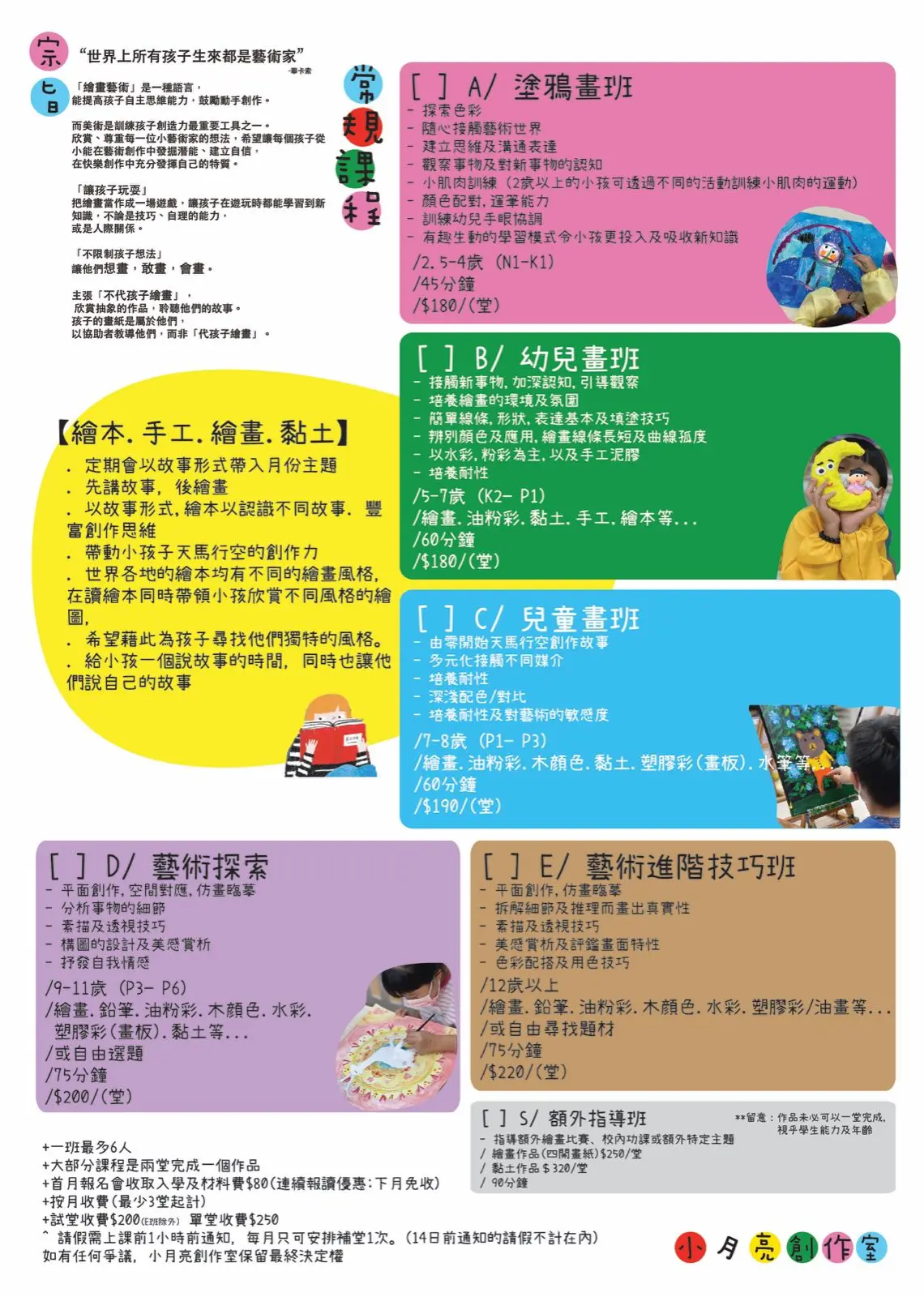 欣赏、尊重每一位小藝街家的想法,希望讓每孩子從小能在藝術創作中發掘潜能、建立自信,